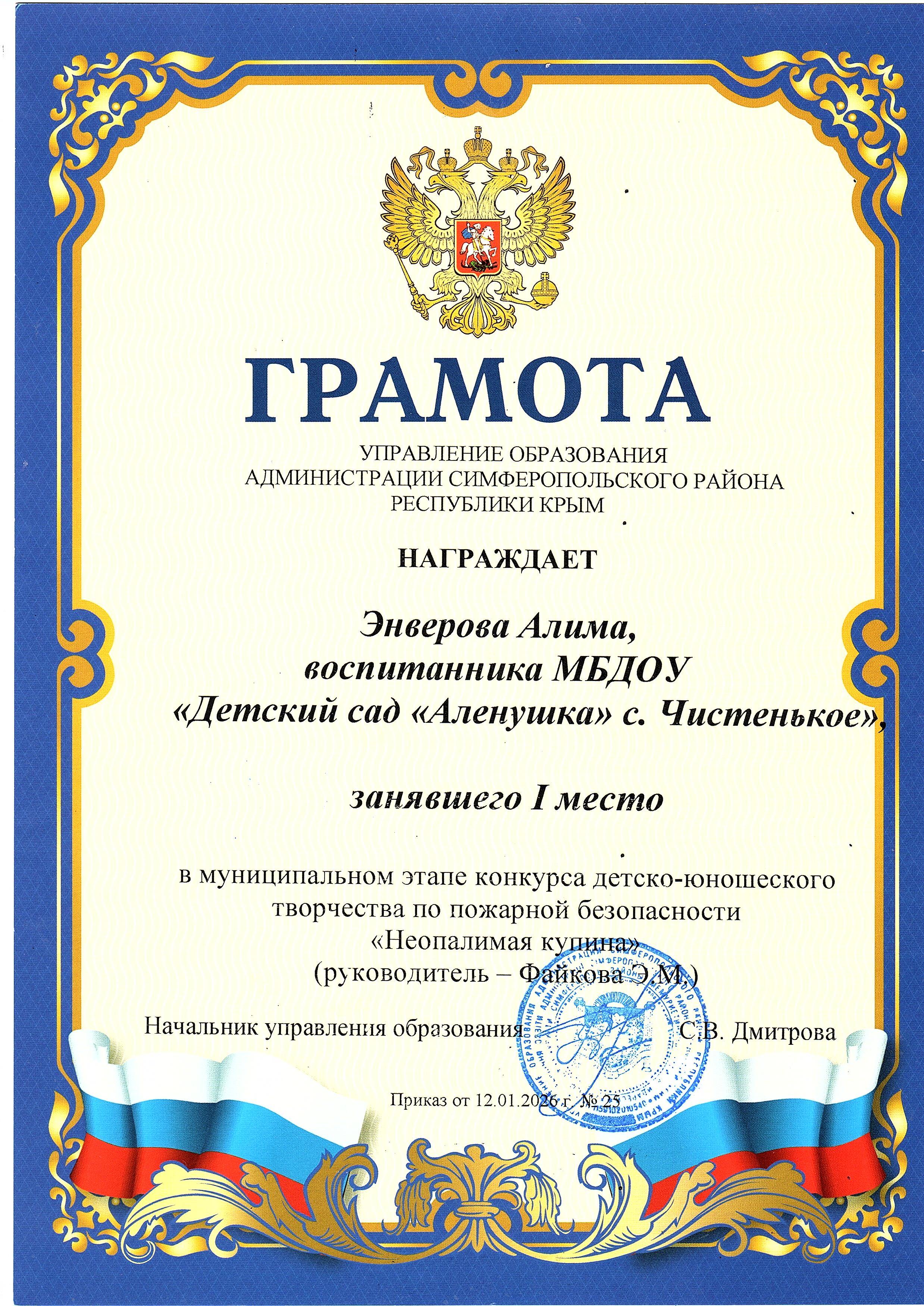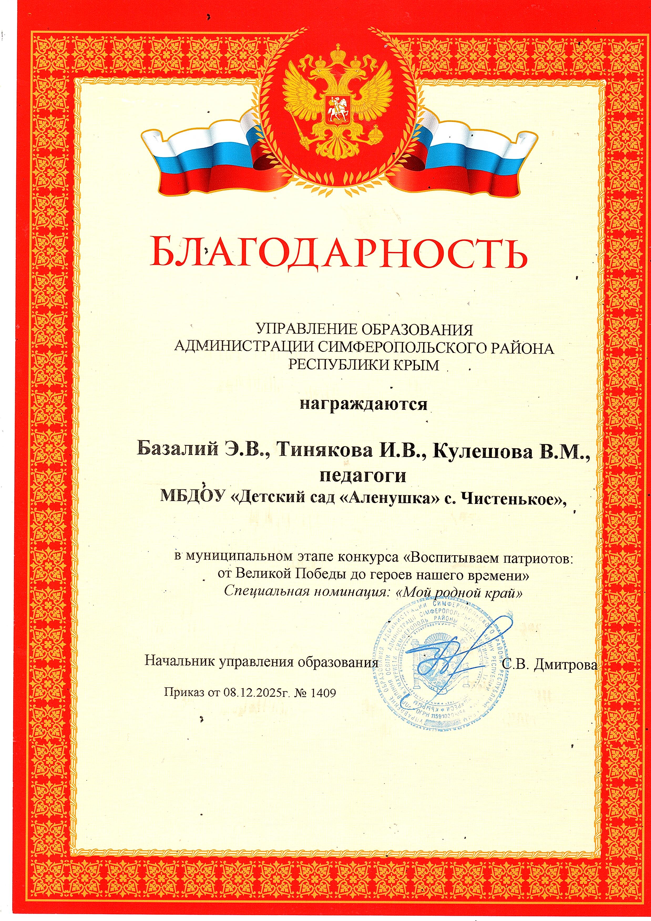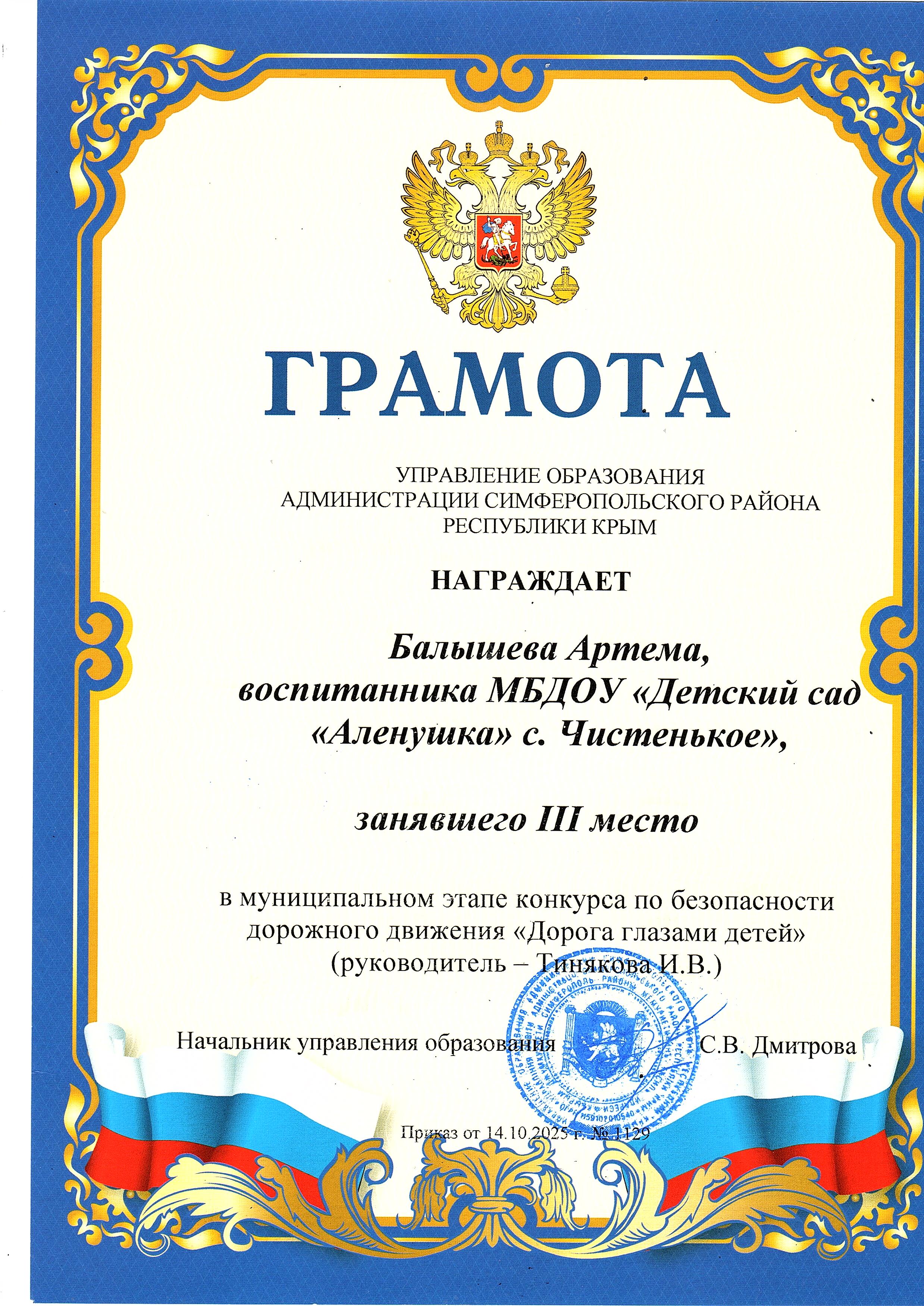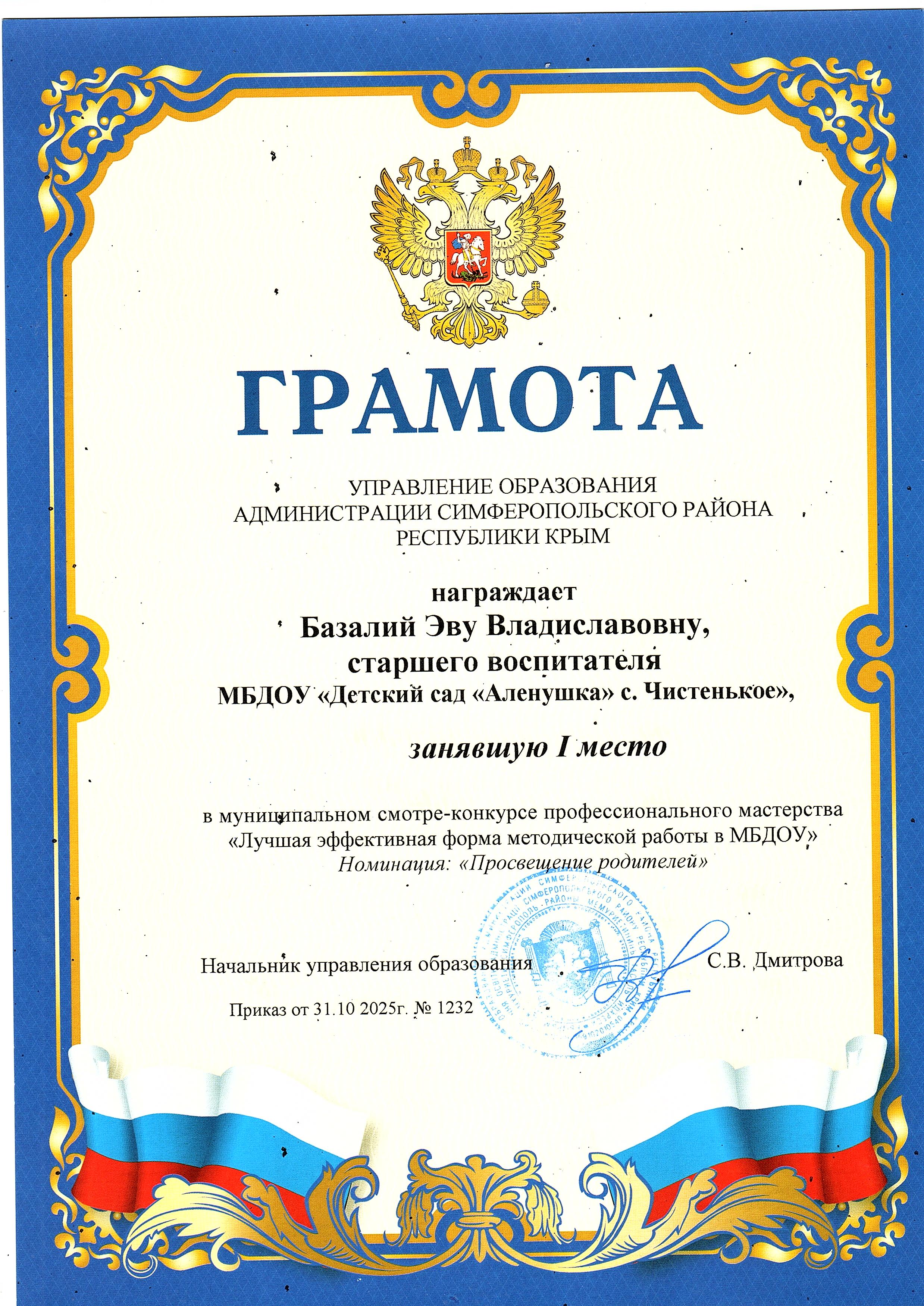Муниципальное бюджетное дошкольное образовательное учреждение «Детский сад «Аленушка» с. Чистенькое» Симферопольского района Республики Крым